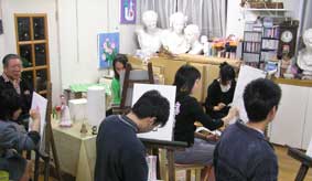 まずデッサンからスタートしますが、徐々に各自の希望に合わせて油彩等へとステップできるようにご指導致します。